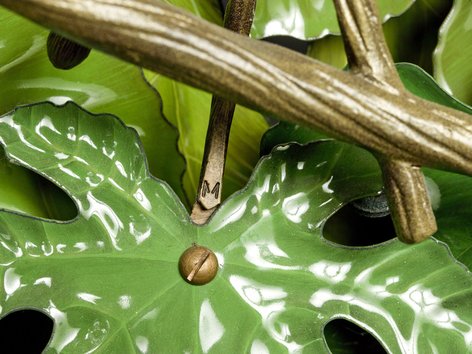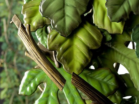 Дизайнер разработал специальную технологию крепежей листьев к веткам и между собой. Нужно было собрать всю композицию так, чтобы места стыков деталей были невидны.