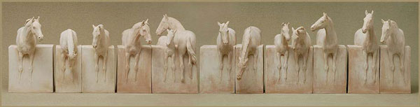 Перед началом работы Сьюзен обязательно делает эскизы и изучает поведение, движения и анатомию лошадей. Бронзовые скульптуры лошадей сделаны непосредственно из воска и крепятся к устойчивому основанию металлическими прутьями.