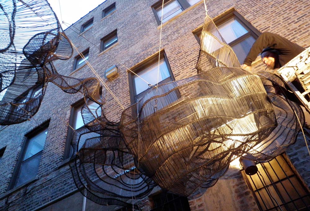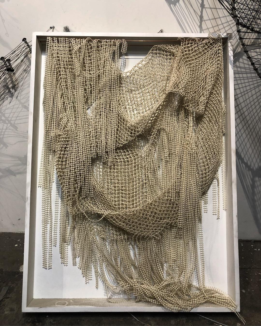 Его скульптуры сочетают в себе незнакомый мир новых форм со знакомым – Эрик не маскирует материалы, с которыми он работает. Большие металлические инсталляции Гуши создаются с помощью ткацких и текстильных технологий. Используя строительные и инженерные материалы, эти исходные источники полностью трансформируются, превращаясь в совершенно другой эфемерный организм, но при этом сохраняя промышленные качества исходных материалов.