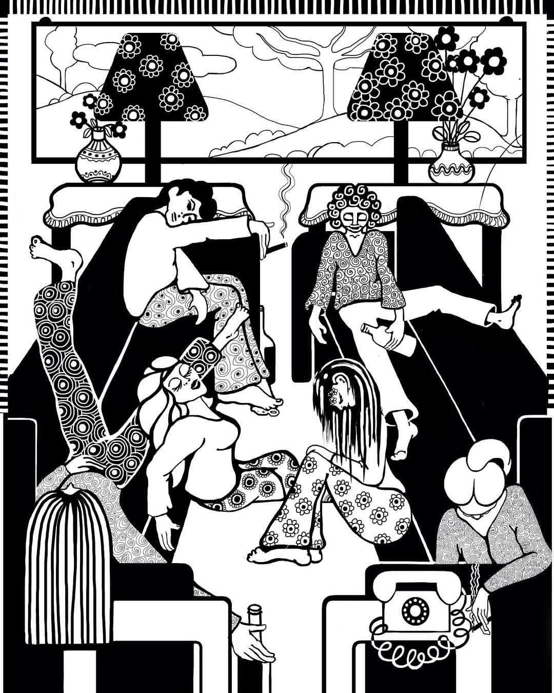 В основе работы «Цветочный риф» лежат собственные рисунки Магдалены. Хотя несколько известных шедевров тоже переведены на «язык шерсти». Например, «Ирисы» Ван Гога. Магдалена одержима цветами и сильными женщинами. Эти две темы раскрываются практически в каждом гобелене Магдалены.